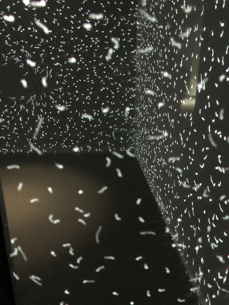 Immerger son corps de flux visuels, devenir tableau, miroir ou livre ouvert de lettres, signes, points, cristaux, microbiotes le recouvrant graduellement, musicalement, tout en poésie et en abstraction. N’être plus qu’à l’écoute de ses perceptions corporelles.
