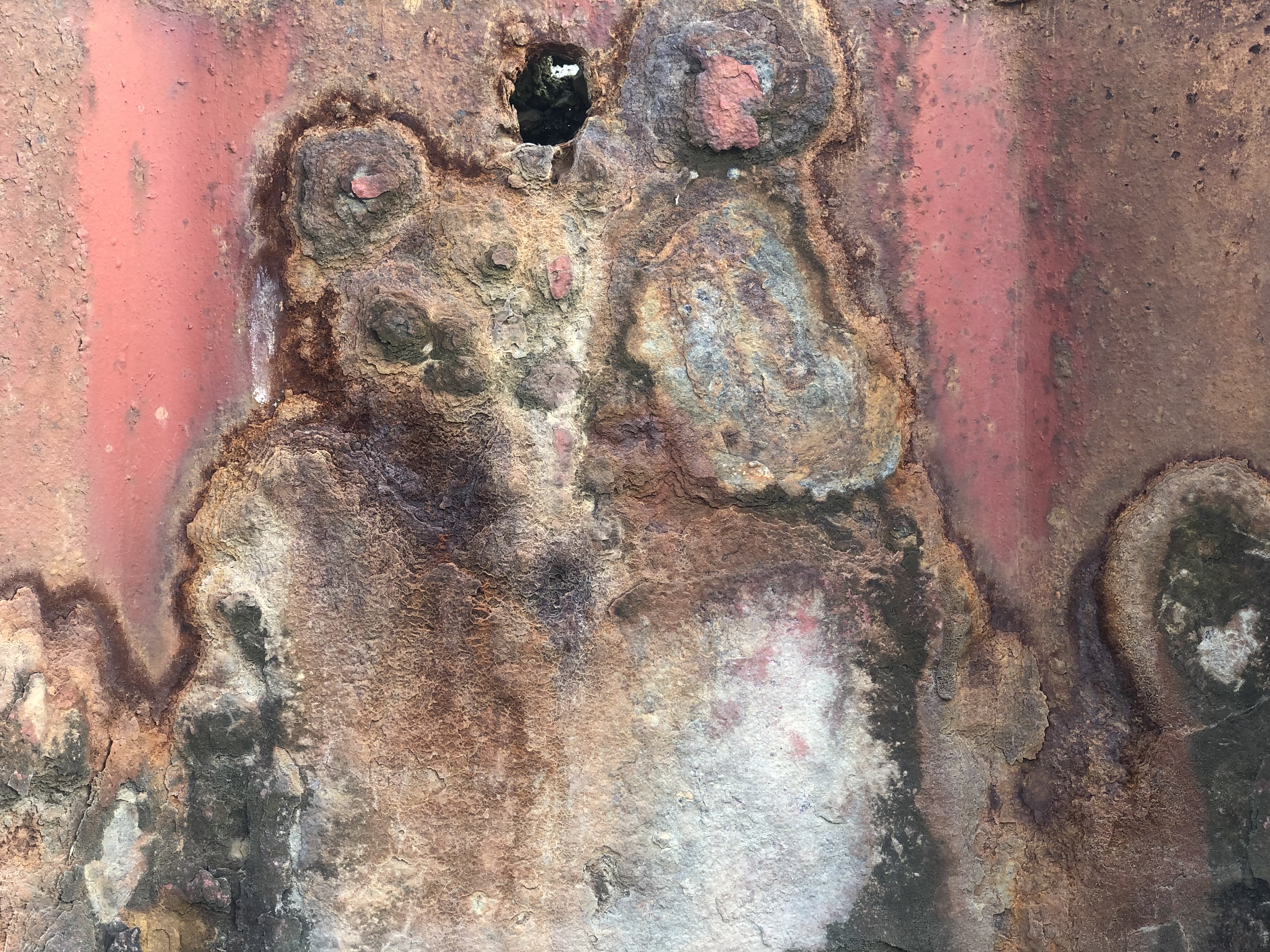 Je développe aussi une curiosité pour toute sorte de matières, qu’il s’agisse de murs délabrés dont la matière s’effrite, de débris de rouille, de cuivre vieilli, de miroirs piqués, de terre humide ou sèche, craquelée, de sable, d’eau, de pierre,…