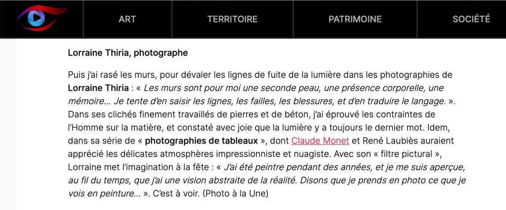 © Textes et photographies: Lorraine Thiria/All rights reserved