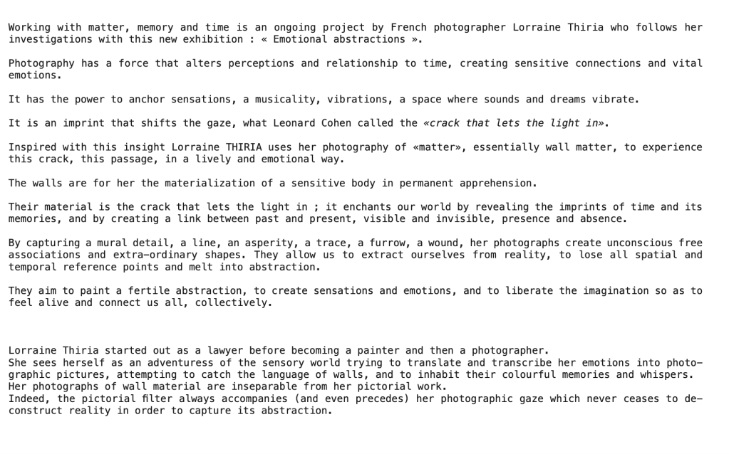 © Textes et photographies : Lorraine Thiria/All rights reserved