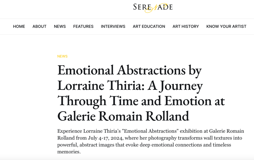 Publication dans le magazine Serenade Art magazine du 1er juillet 2024