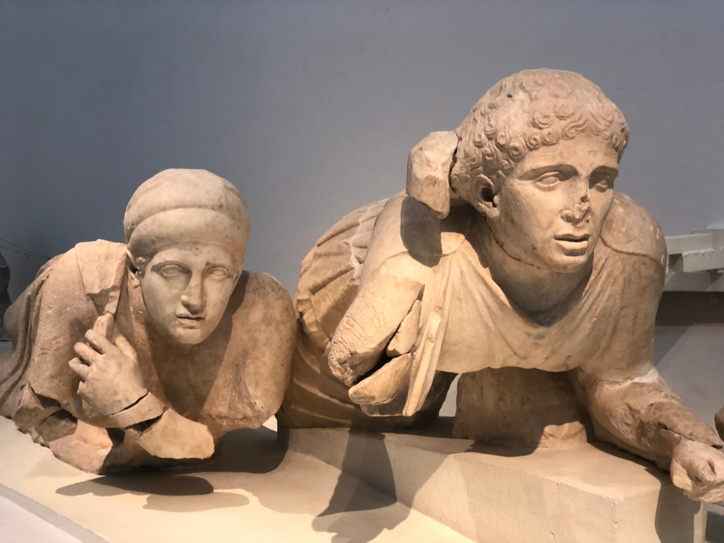 Tu te revois seule avec Lui, et très émue, dans la grande salle du musée archéologique du site, et admirer les métopes divins du temple de Zeus qui y demeurent désormais, regroupés et mis en scène dans une grande modernité; muséographie contemporaine de statues expressives et frontons antiques vous perdant davantage encore dans ce rêve éveillé… correspondance et alignement parfaits du corps et de l’esprit, sensation d’être exactement là où la vie prend naissance.